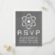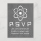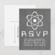 Cute and nerdy Atomic Chalkboard Wedding Response Card featuring a simple atomic symbol in white on a chalkboard look background. This geeky and fun wedding RSVP postcard is perfect for the science enthusiast couple! Easy to customise, simply add the details of your wedding in the spaces provided. Click "Customise It" to find more personalisation options.
