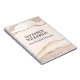 This custom notebook features a modern and elegant theme. A sample name is printed across the front which you can change to include your own custom name or text. A sample job title or business name is printed below. An agate stone pattern in shades of ivory and peach is printed along the top and bottom portions of the binder, and has beautiful accents of gold glitter. The background is a soft ivory colour.