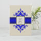 Ivory Black and Blue Damask Wedding Invitation