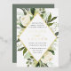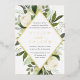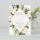 Our Ivory Bloom wedding invitation surrounds your wedding day details with a modern diamond shaped geometric frame of painted watercolor greenery, eucalyptus leaves, botanical foliage and white rose and peony flowers. Gold foil trim and accent lettering add a luxe finish to this beautiful design.