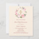 A soft ivory blush background, decorated with watercolored pink and white flowers in a wreath and a golden cross. Personalize and add a name and details.