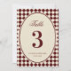 This ivory & burgundy checkered wedding table number features a heritage-style checker pattern in deep burgundy and soft cream tones for a warm, vintage-timeless look. The mix of playful-retro character and elegant contemporary typography creates an understated old-money fall / winter mood with subtle whimsical charm. Designed to coordinate beautifully with the Ivory & Burgundy retro suite, it brings classic nostalgia to a modern table setting.