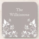Sweet and dainty Butterfly Floral Coaster Set with a muted dusty grey background and ivory butterflies and floral vine embellishments. This elegant floral cork coaster set would complement any decor while protecting your furniture! Easy to customise, simply add the personalised text of your choosing in the text fields provided. Click on the "Customise It" button to find additional personalisation options.
