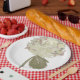 A recoloring of my original chrysanthemum watercolor painting. A touch of spring. Perfect for serving desserts & party food for a buffet, potluck, or family gathering.