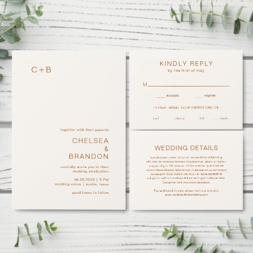Ivory Copper Monogram Modern Wedding CollectionDesigned by Cynthia