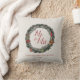 This festive country wedding "Mr. & Mrs." Christmas throw pillow features hand-drawn western illustrations of a pine wreath with cowboy boots, cowboy hat, holly berries, cacti and vintage xmas ornaments in black ink against an elegant ivory background. Personalise with your family initial and name to make it uniquely yours.