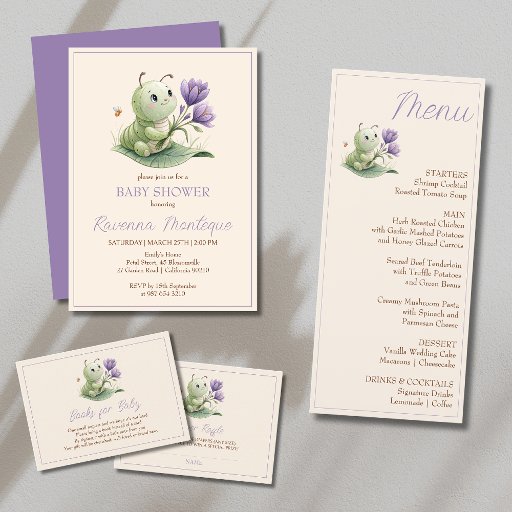 Ivory Cute Caterpillar Custom Baby Shower Menu