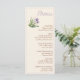 This ivory baby shower menu card features a sweet green caterpillar illustration with soft crocus flowers, creating a light and charming design. The pastel style makes it a perfect personalized table detail.