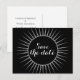 Sophisticated and elegant Deco Retro Save the Date Postcard in ivory featuring a circular art deco ornamental sunburst design. Easy to customise, simply add your wedding details in the text fields provided. Click "Customise It" to find more personalisation options. BACKGROUND COLOR CAN BE CHANGED TO ANY COLOR.