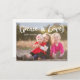 Trendy and modern Elegant Sketched Peace and Love Holiday Photo Postcard featuring a brushstroke handwritten typography design in white. This stylish holiday photo card is easy to customise with a photo and personalised Christmas greeting. Click "customise it" to find additional personalisation options.