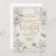 Ivory Faux Embossed 3D White Rose Floral Wedding Invitation