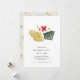 Festive holiday botanicals in wintery hues of ivory, chartreuse, mint, and red decorate this fun holiday party invitation.