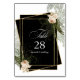 Geometric watercolor floral wedding table number cards in accents ivory and gold.