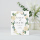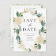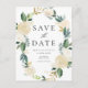 Announce your wedding in a modern, interactive way with this QR code save the date postcard. Featuring a floral wreath of ivory and cream flowers, paired with greenery and faux gold foil accents. The QR code on the postcard will direct your guests to your wedding website, providing them with all the details they need, including RSVP options and event information. You can easily customise this postcard with your names, wedding date, and a personalised QR code. Perfect for any wedding theme, this floral save the date postcard is a convenient and memorable way to share your big day.