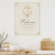 Welcome your guests in timeless style with this elegant ivory and gold baroque wedding welcome sign. Featuring a refined monogram crest, delicate gold ornamental details, and soft neutral tones, this design is perfect for classic, formal, and luxury wedding celebrations.