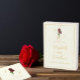 Timeless elegance: Traditional minimalist red roses wedding with gold script typography and ivory background.