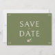 Whimsical and chic. This trendy wedding save the date card features a lovely blush rose watercolor floral illustration, alongside a contemporary set of fonts against a soft neutral ivory color at the front and contrasting green at the back.