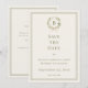 A soft ivory colored background, muted sage green frame and wreath. Personalize and add your monogram initial, name and the details.