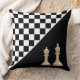 Ivory King & Queen on Stylish Black & White Chess Cushion