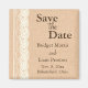 Beautifully illustrated lace decorates this light burlap coloured save the date magnet. It is part of a full wedding collection. It is also available with white lace.