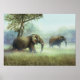 Elephant bulls in early morning mist