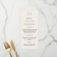 Printed on a high-quality paper sheet, it beautifully presents your dinner selections while enhancing your table décor. Personalise with your names, wedding date, and menu details to create a coordinated and sophisticated look for your reception.