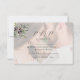 The front of the card showcases a refined RSVP layout layered over a subtle photo background, adding warmth and intimacy without overpowering the text. The neutral ivory and cream tones keep the design light and sophisticated, while the olive foliage brings a natural, organic accent inspired by Mediterranean and European wedding styles.