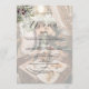 This elegant ivory wedding menu card features a soft photo background overlay paired with a minimalist layout and a refined olive branch botanical accent. The design blends warm cream and ivory tones with natural greenery, creating a timeless Mediterranean-inspired look that feels both romantic and modern.