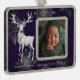 Ivory Reindeer Babys First Christmas | Purple Silver Plated Framed Ornament