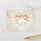 Ivory Ribbon Gold Stripes Wedding Save the Date Announcement Postcard