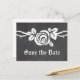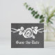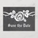 Sweet and pretty Rose Chalkboard Save the Date Postcard in ivory featuring a single lovely rose on a vine on a chalkboard look background. This elegant design is perfect for announcing your spring or summer wedding. Easy to customise, simply add your wedding details in the text fields provided. Click "Customise It" to find more personalisation options.