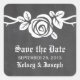 Sweet and pretty Rose Chalkboard Save the Date Stickers in ivory featuring a single lovely rose on a vine on a chalkboard look background. This elegant design is perfect for announcing your spring or summer wedding. Easy to customise, simply add your wedding details in the text fields provided. Click "Customise It" to find more personalisation options.
