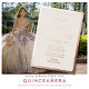This luxe Quinceañera invitation features a gorgeous silhouette of a quinceañera dress with tiara, hearts galore around this glamours 15th birthday invitation complete the design. Real foil details make this unique quinceanera invitation elegant and sophisticated. Customisable ivory background adds to the design and complements the rose gold real foil details and typography. All typography in real gold foil is customisable for you to personalise your fifteenth birthday invitation. Tailor it to your special day, making it unique.