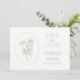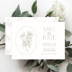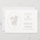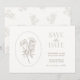 Modern elegance with vintage old-world charm. This lovely ivory white and sand wedding save the date card features a contemporary set of dark taupe fonts, script elements and botanical floral illustration. The back elevates the card design with a lovely botanical pattern illustration for contrast.