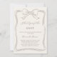 A soft ivory colored background, decorated with a hand drawn taupe colored bow. Personalize and add a name and party details.