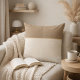 A beech-inspired neutral accent in soft ivory and warm taupe, divided by a fine gold stripe for subtle contrast. The clean two-tone layout brings structure and visual balance to sofas, beds, and reading nooks, pairing well with layered neutrals and modern interiors.