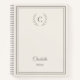 A timeless ivory colored notebook designed with a refined monogram and delicate warm taupe wreath details.