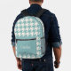 Ivory Teal Blue Seafoam Green Houndstooth Pattern Printed Backpack