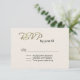 Elegant wedding RSVP card done in an ivory textured looking front with fancy gold tone graphic text reading RSVP. The back of the card is done in a tan and ivory flourish damask background. Personalise all the text for your special day. Matching products are available.