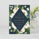 The lovely green and white flowers nicely complement the navy blue background. A nice design for your summer wedding.