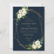 The lovely green and white flowers nicely complement the navy blue background. A nice design for your summer wedding.