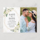 Ivory White Floral Gold Geometric Save the Date Postcard