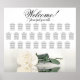 Enhance the beauty and sophistication of your wedding reception with this captivating 25 table seating chart, accommodating up to 250 guests with 10 seats per table. The gorgeous modern floral design features a single ivory, white, or cream coloured rose, elegantly resting on its side, reflecting in the water. The elegant script calligraphy title reads "Welcome! Please find your table," while the bottom section provides space for the couple's names and wedding date, adding a personal touch to your decor. This seating chart exudes a timeless, classic, sophisticated, and glamourous aura, welcoming your guests to your reception and guiding them to their seats with ease. It's the perfect way to elevate the style and elegance of your wedding reception while ensuring your guests have a memorable experience.