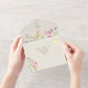 Perfect for spring, garden, or countryside weddings, it combines convenience and beauty in one seamless piece. The built-in RSVP section makes guest replies easy, while the soft floral artwork adds a romantic, timeless touch.