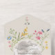 Celebrate your love with this elegant ivory all-in-one wedding invitation featuring colorful watercolor wildflowers, a photo overlay, and a delicate floral monogram. This eco-friendly design folds into its own envelope — no separate envelopes needed.