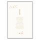 Elegant, fresh and modern. This simple and elegant table number card with guestlist features a whimsical line drawn wildflower and a contemporary set of fonts in a faux gold, against a light ivory background. The front design is repeated at the back for better table visibility. Alternatively mount the full set of cards together on a display board. This design includes 10 names, however 12 names (max) still fits.