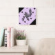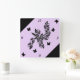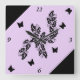 Ivy Leaves and black Butterfly on Purple Square Wall Clock