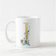 Letter J , gold initial with blue watercolour foliage initial mug. © Julie McIver