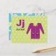 Letter J is for Jacket in our Alphabet Flash Card set. Get all 26 letters of the alphabet! A double-sided postcard that is great for memory games and teaching, geared for education, schools, teachers and homeschool for kindergarten and babies. All text is editable if you need to customise.