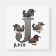 Four different juncos perch upon a slate-coloured letter J. You can totally customise this gift! Move the design around, change the background colour or style, add your own text or images -- make it your own!